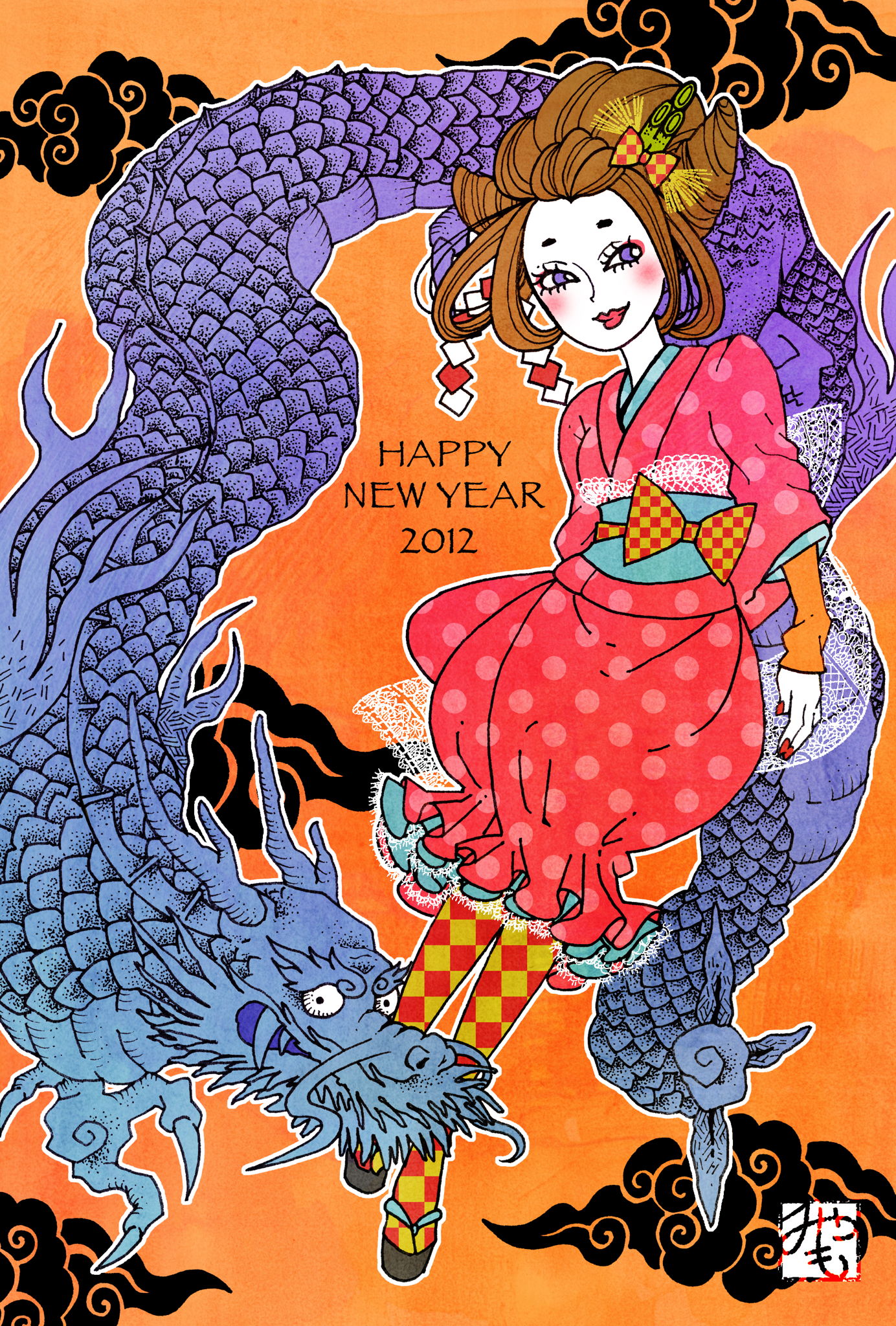 使用画材:ペン、Photoshop/スタイル:Myamo's Style/2012年、年賀状その2♪龍の鱗が一番時間かかりました(笑)
