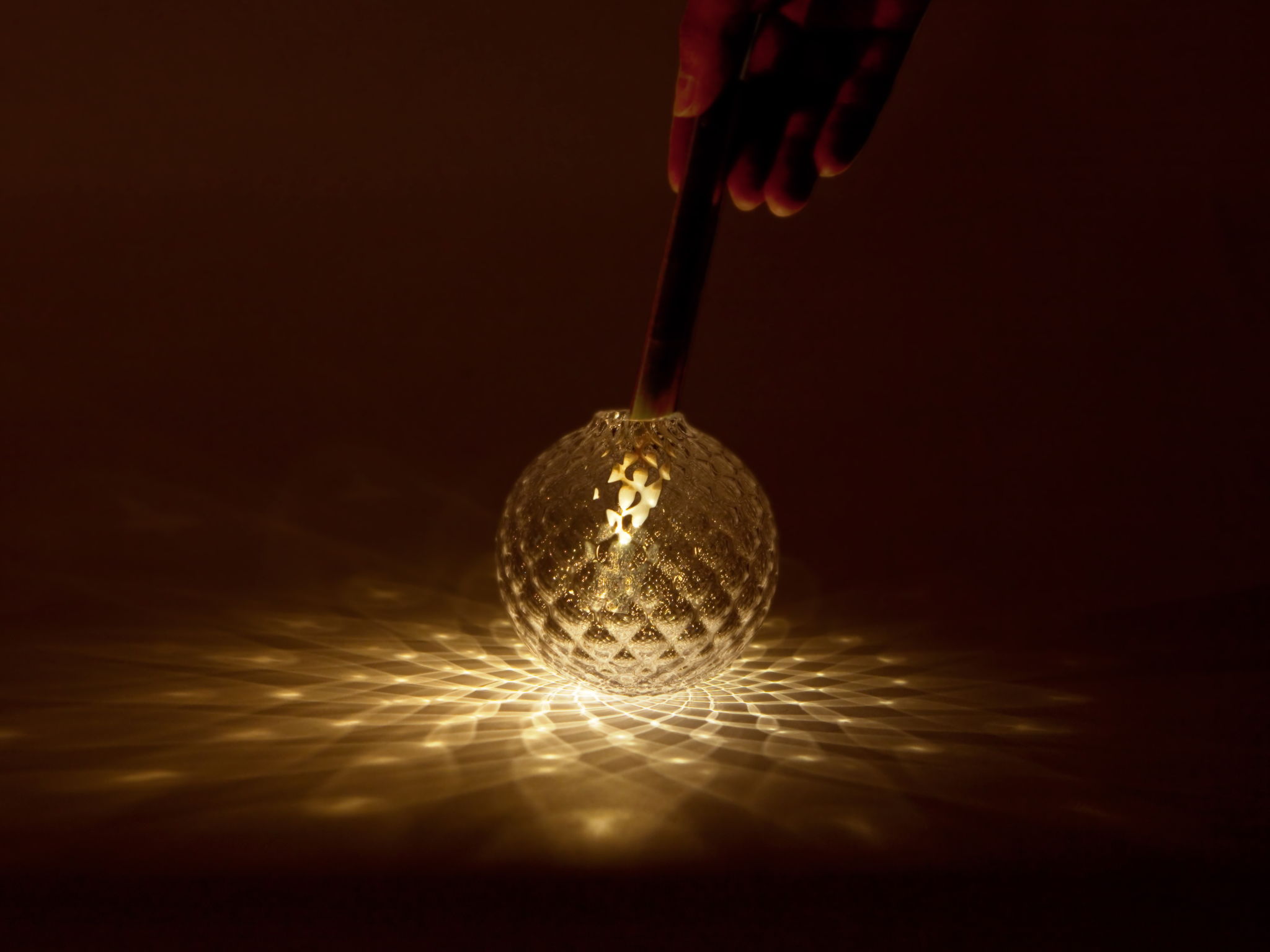 このプランでは、ワンカップの側面に水玉(パンチング)模様を施し、これにより苗場山に降り注ぐ雪を表現しています。側面同士の重なりあいにより、モアレ模様が発生します。この模様は、商品と人の位置や角度、ボトル中の水量(空気と水の屈折差)によって繊細かつ多様に変化します。これにより、苗場山にぱらぱらと降る雪をアニメーション的に表現するとともに、お酒の甘さを視覚的に際立たせます。