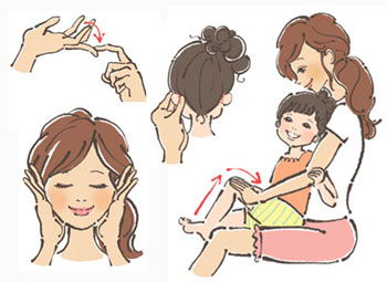ファッション誌【Hug Mug】掲載。親子マッサージのイラストです。
