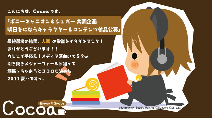 ポニーキャニオン&シュガー共同企画の「キャラコン」に於いて「入賞」の栄誉カクトク!ありがとうございます!!