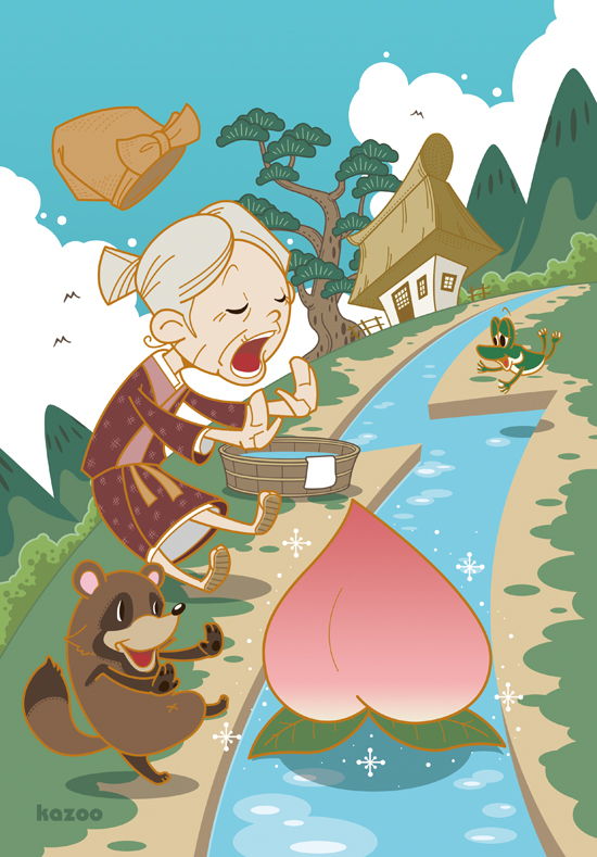 展示のコンセプトが、「和とPOPの融合」だったので、主線の色や背景の大胆なデフォルメで、昔話のイラストでありながらもデザイン性を意識して描きました。