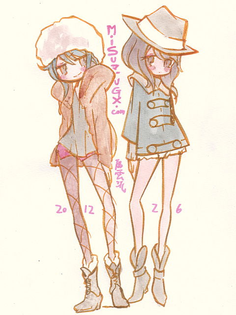 時々きまぐれにスケッチしている町で見かけた女の子のイラストですよ。季節ごと年毎にいろんなスタイルがあるものですね