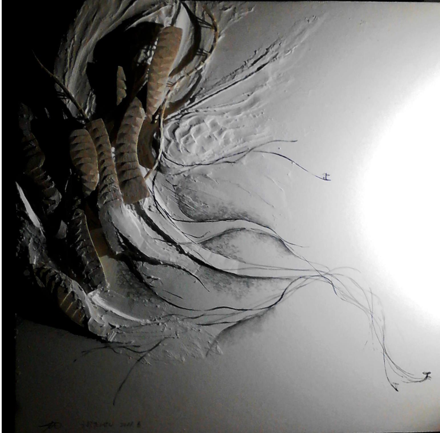 鉛筆の線が地形のように立ち上がり、構造体のように盛り上がり屋根になり... 「線から地形への半立体モデル」産立つ、浮ぶ起つ線