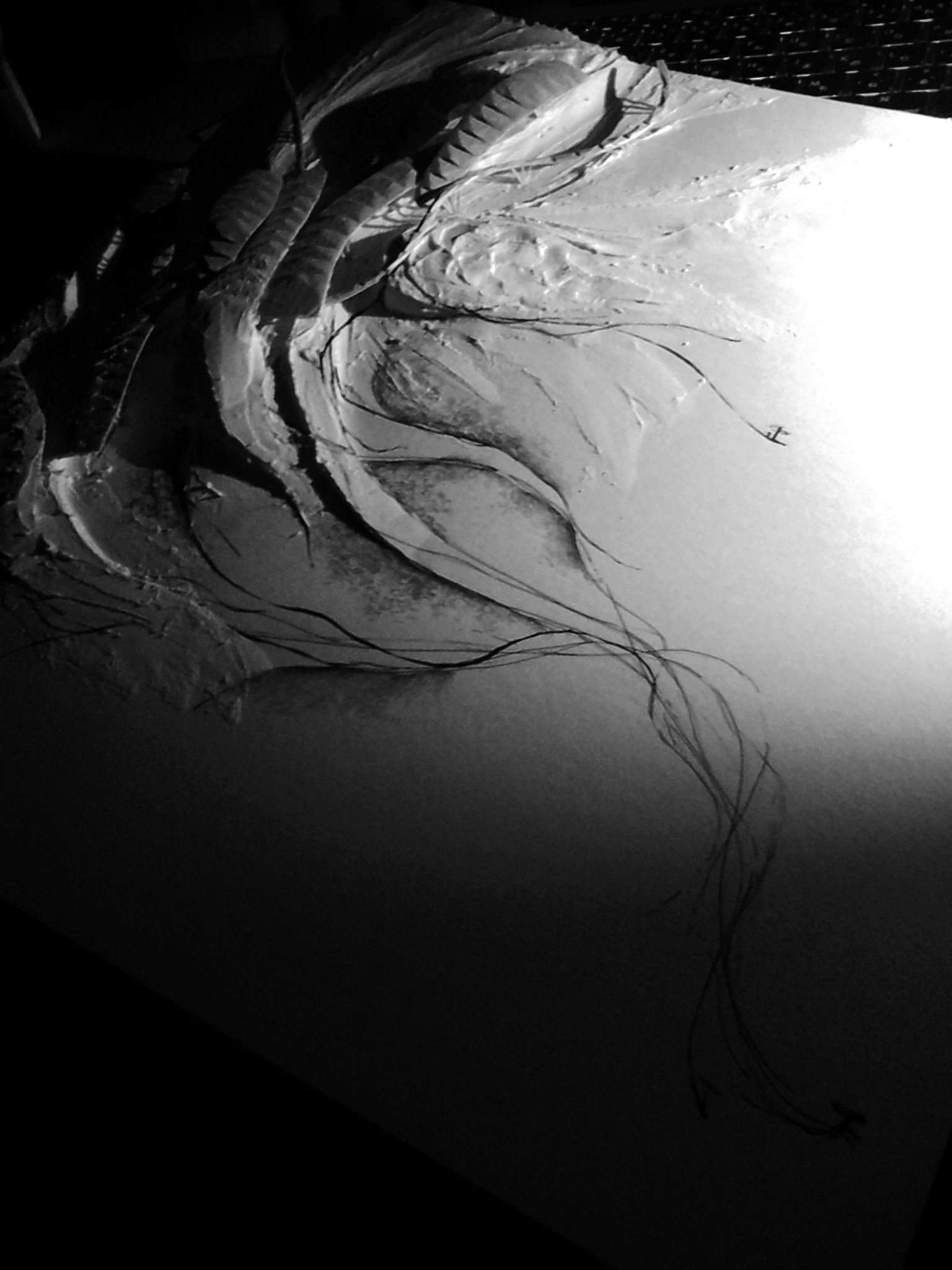 鉛筆の線が地形のように立ち上がり、構造体のように盛り上がり屋根になり... 「線から地形への半立体モデル」産立つ、浮ぶ起つ線