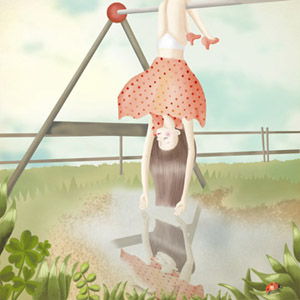 女の子が公園でヒトリでサーカスの演目を行っています。