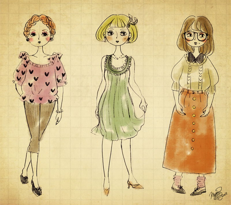 使用画材:Photoshop、シャープペンシル/スタイル:Myamo's Style/名古屋の商店街で見かけた可愛いお洋服達。物欲は尽きません…。