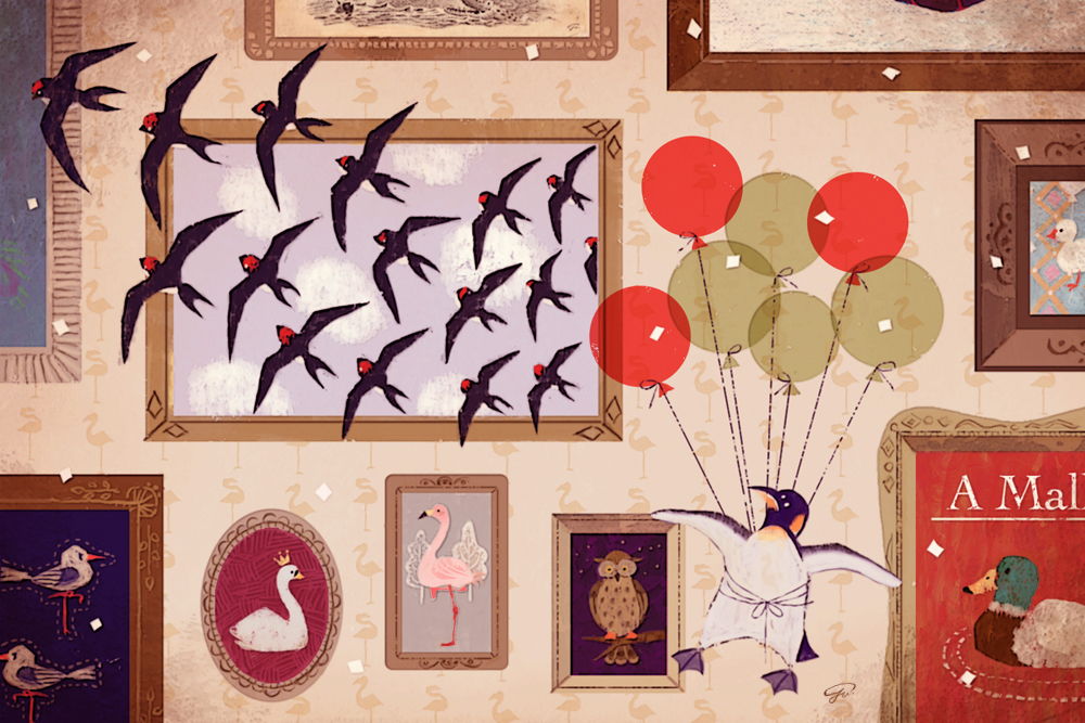 『ぼくの知らないところで、鳥たちは果てしない大空で自由に飛び回っている。風船でそこまで飛んで行くから、仲間に入れてほしいな。今日、ちょっとだけ、そんな夢を見たんだ。』