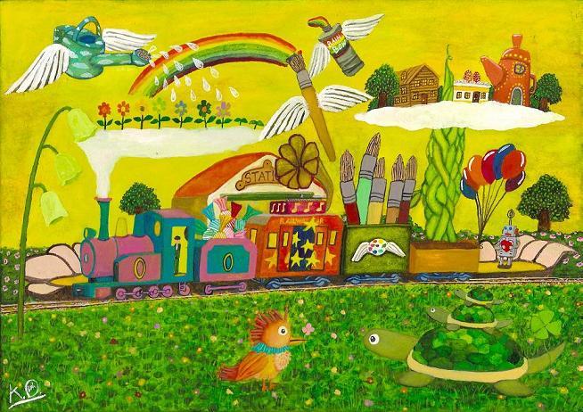 A4サイズ(210×297)のパネル・シリウス紙に水彩絵の具で描いたもので、パネル購入・水張りに費やした時間を含めて4日で描きました。 描く前に何処に何を配置しようか...だとか全く考えていない状態で描きましたが、予め黄色(※「希望の色」と聞いたので)を全面に塗り、その上からなるべく明るい、ハッキリとした色を使うようには心掛けました。