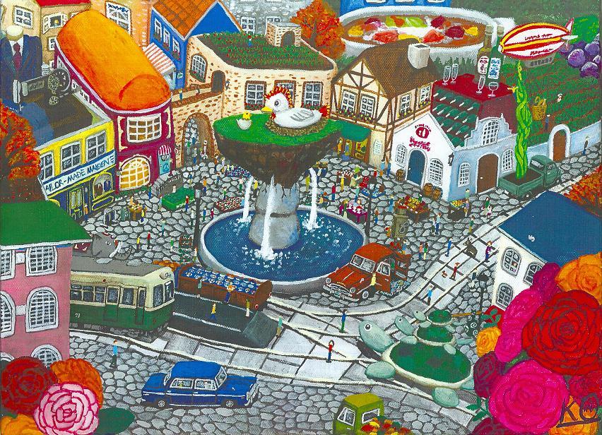 F4(333×242)のキャンバスに全面アクリルで塗ったもの。 「アクリル絵の具で水彩で描いた従来の絵のような細かい/色合いの絵を描く事が出来るか?」と言う事の実験?的な部分もあったかと。 画材の違いからなのか、発色・(描いている最中の)勝手の違いが多々ありましたが、概ね思い描いていた通りのものは描く事が出来たと勝手に思っております。
