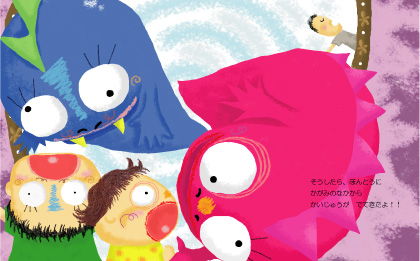 オリジナル絵本「かがみのなかから・・」の一場面です。