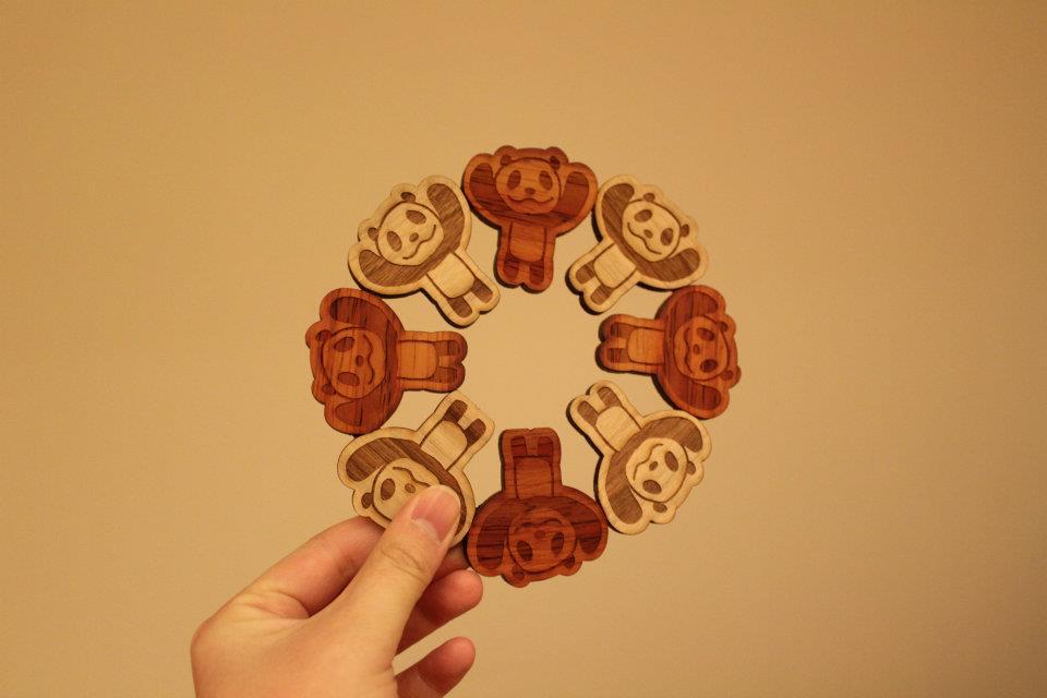 レーザーカッターで切った木材をくっつけてつくったパンダ鍋敷き