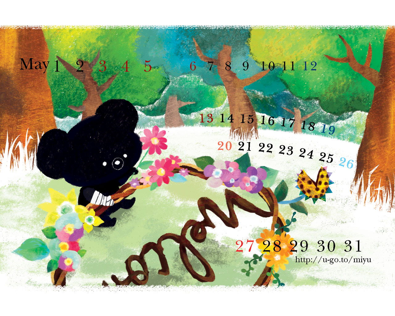 まっくろくまカレンダー2012年5月!(1280×1024)