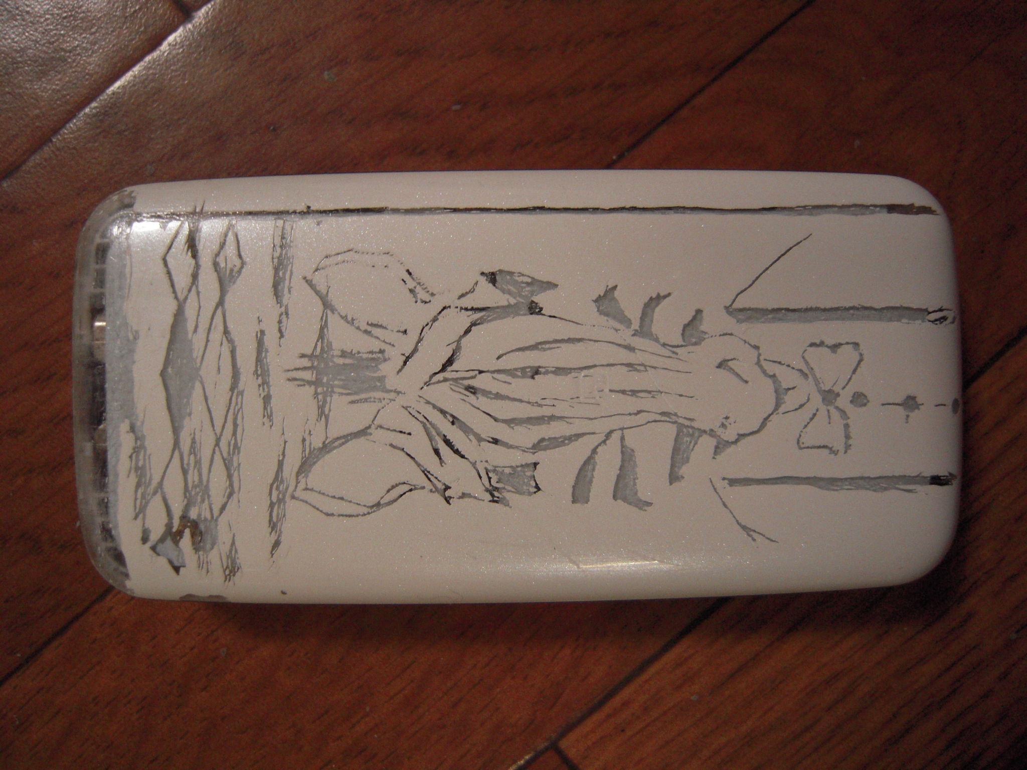 ケータイ彫った。はさみで彫った。