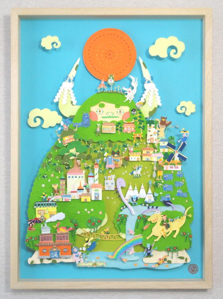 山神に住まう住人を描きました。透明水彩とフェルトで制作。半立体の作品です。