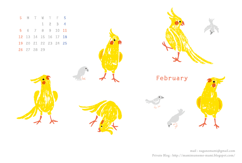 2012カレンダー2月:おかめと文鳥