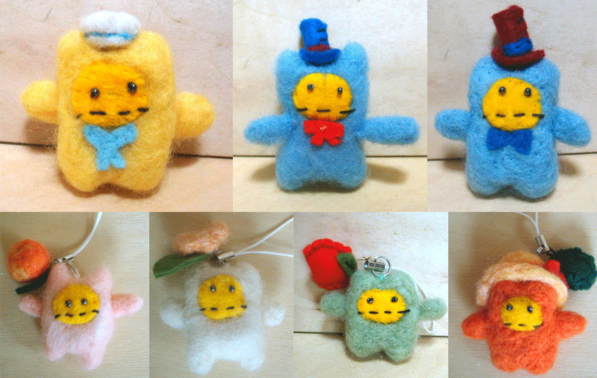 小さいサイズの羊毛ストラップと羊毛ブローチです。(上の3つがブローチです。)