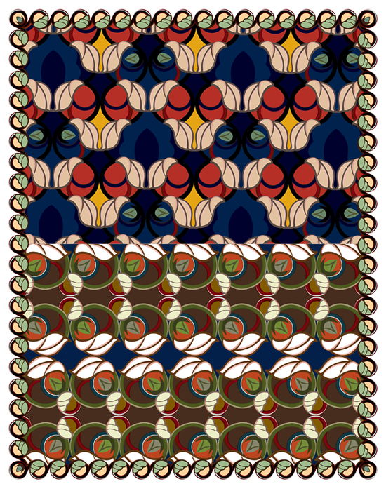 月光美人を元に:Puginゴシック、アートヌヴォー、中世期、ハイダ(ネイティブアメリカン)、ケルトをコンテンポラリー調にしたパターン集。後パッケージに使用。