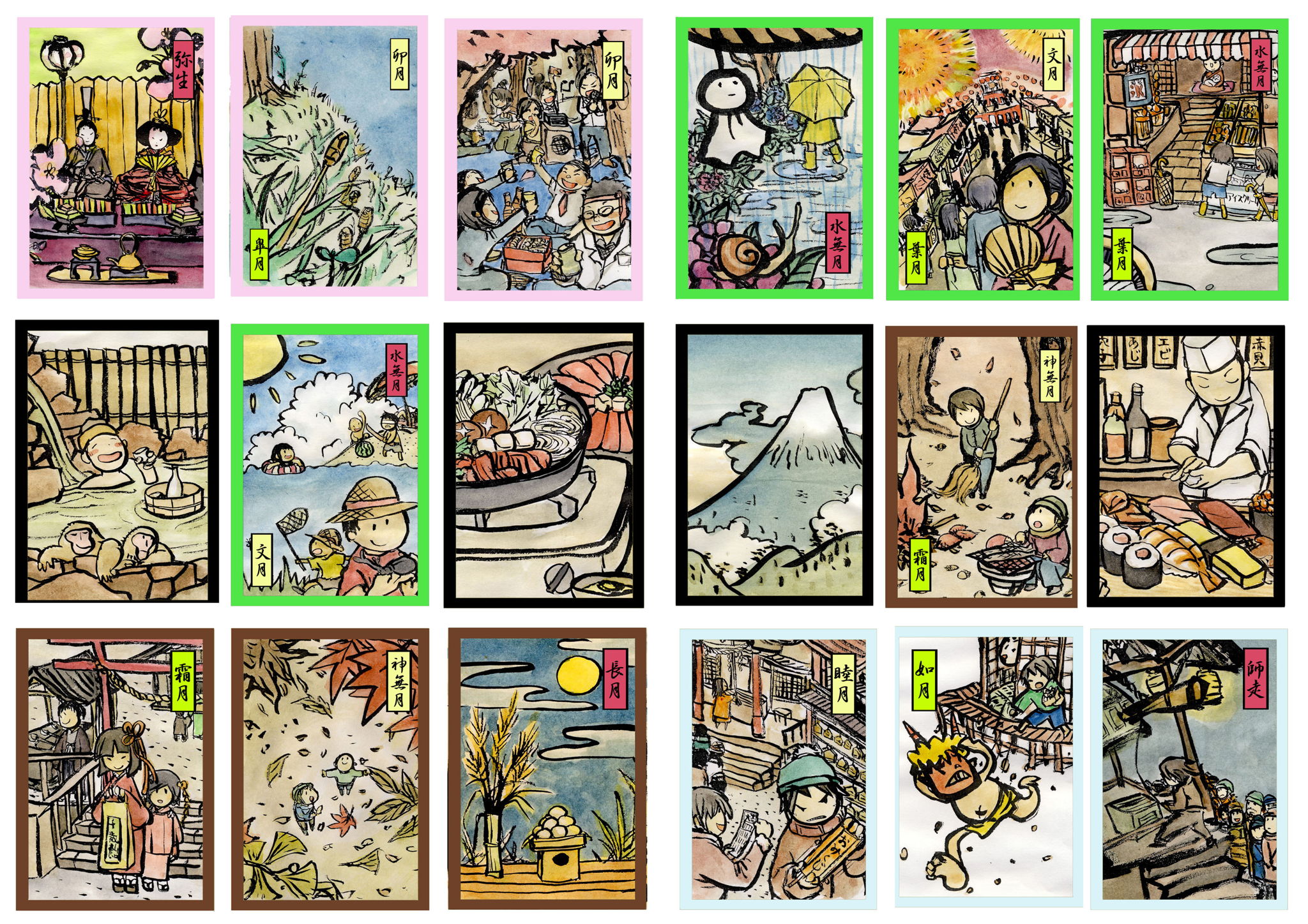 イラストは描いたものの、実現できずに終わってしまったゲームの札たち。