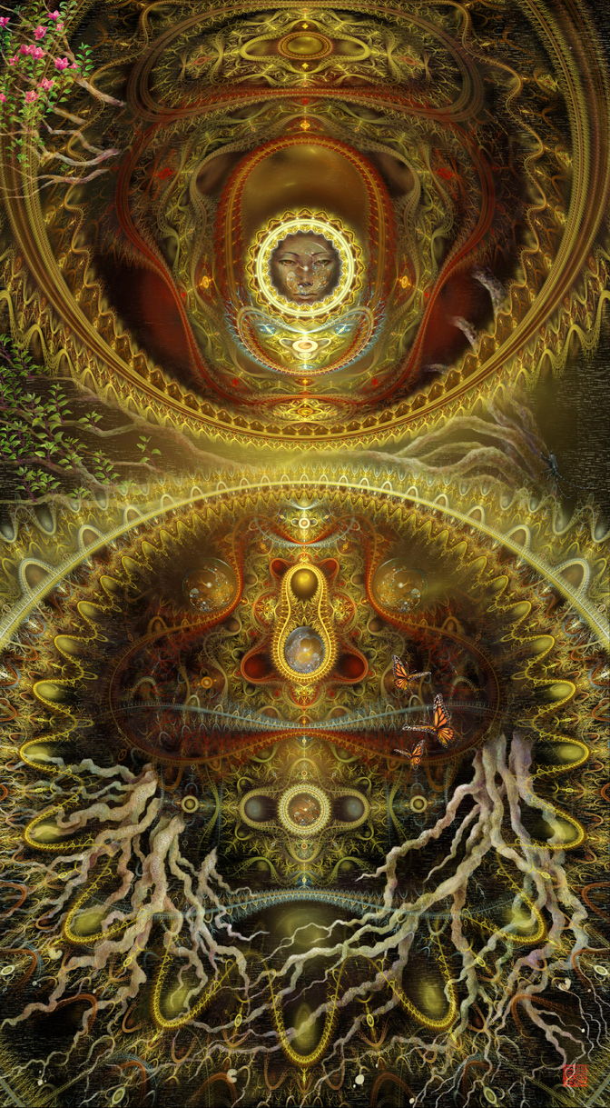 フラクタルと手描きモチーフを用いて幻惑的世界を表現しようと思いました。