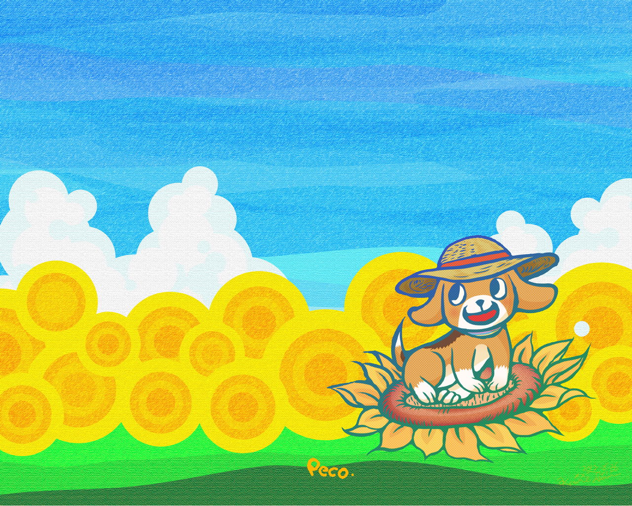 ☆毎月無料の壁紙配布中。7月のひまわりペコです。