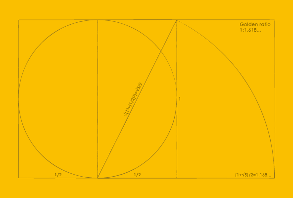 黄金矩形の作り方をモチーフにした図案です。芸術について学び始めたころ、恩師が黄金律についてとても熱心に教えてくれました。私の良い思い出のひとつです。