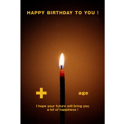 ケーキに立てるキャンドルが1本増えることを表現。「+1」のカードデザインの原案でもあるデザイン。