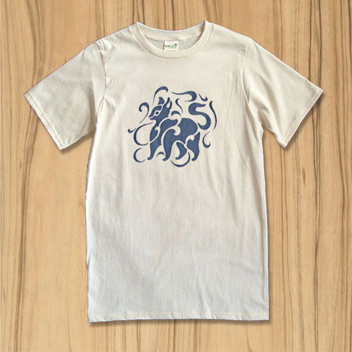 型を彫り顔料を調合しアルミ枠を使用して捺染しています。