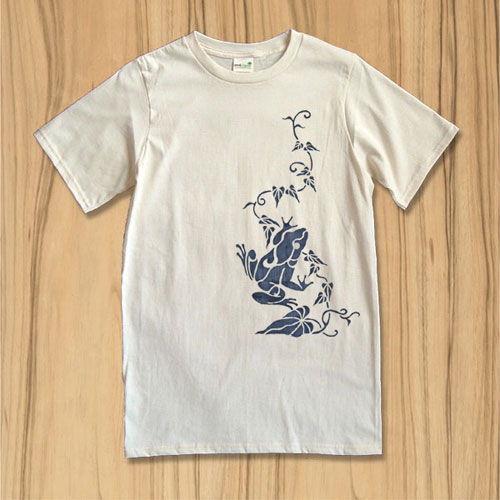 型紙を彫り顔料を調合しアルミ枠を使用して捺染しています。