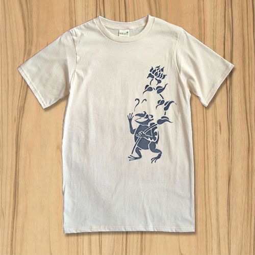 型を彫り、顔料を調合し、アルミ枠で捺染しています。
