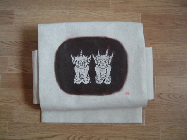 版画用に制作した型で作ったつけ帯。