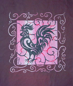 鶏の背景になる唐草と外側の唐草を継続させてみたもの。