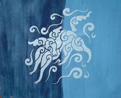 どこが顔なのかわからない姿だけれども、イメージは犬。
