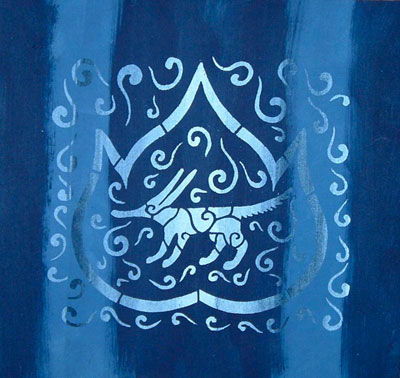 渦巻文様にとらわれていた時の型を使って後に染めた作品。