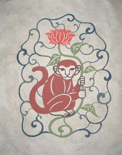 和紙に地色の顔料を刷り込み、数週間から数ヶ月放置した後に糊置きをして、顔料を入れて製作している。