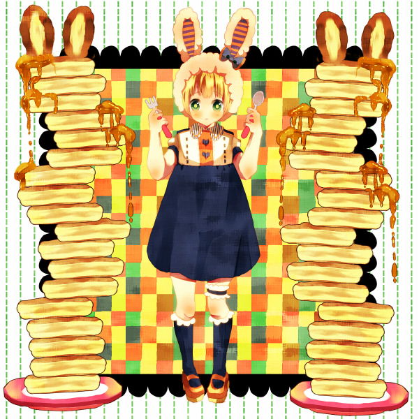■お皿に乗り切らないたくさんのホットケーキ。積み重ねちゃえば大丈夫!■海外の子供服ブランドのイメージ。■シンプルさと描き込む場所の疎と密を意識■使用ソフト Adobe Photoshop elements、Paint Tool SAI