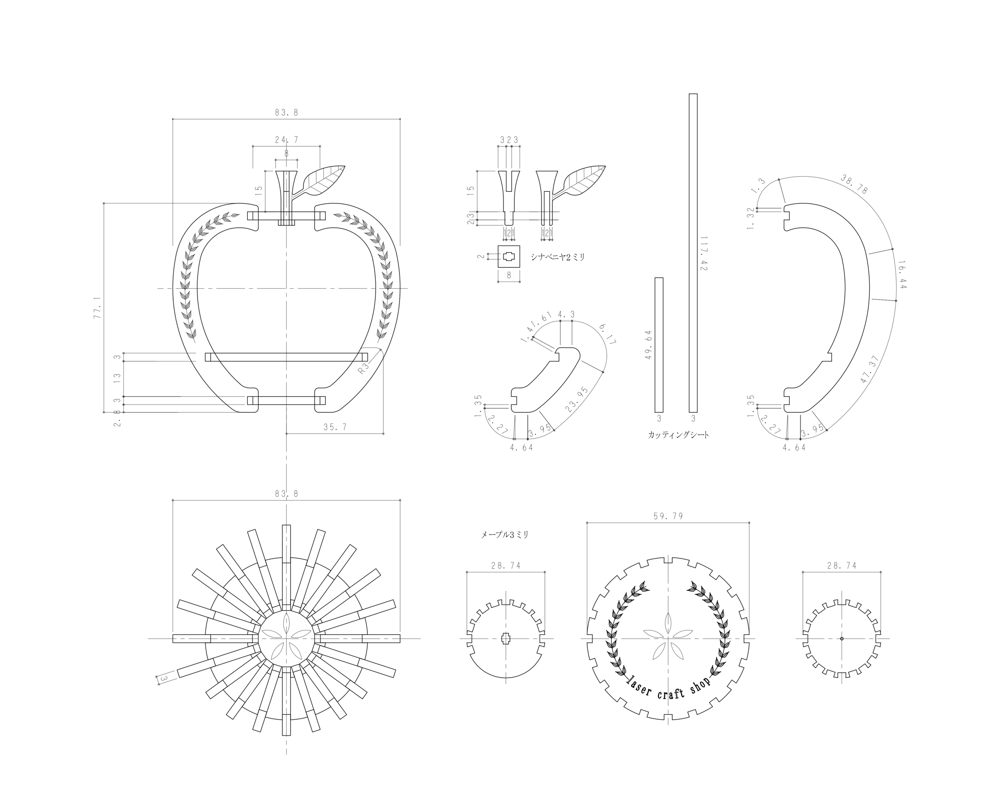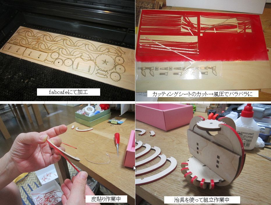 本体のメープル板材が15分、カッティングシートとシナベニヤカットが5分、アクリル板(ケガキ)が5分でギリギリ時間内に納まった。