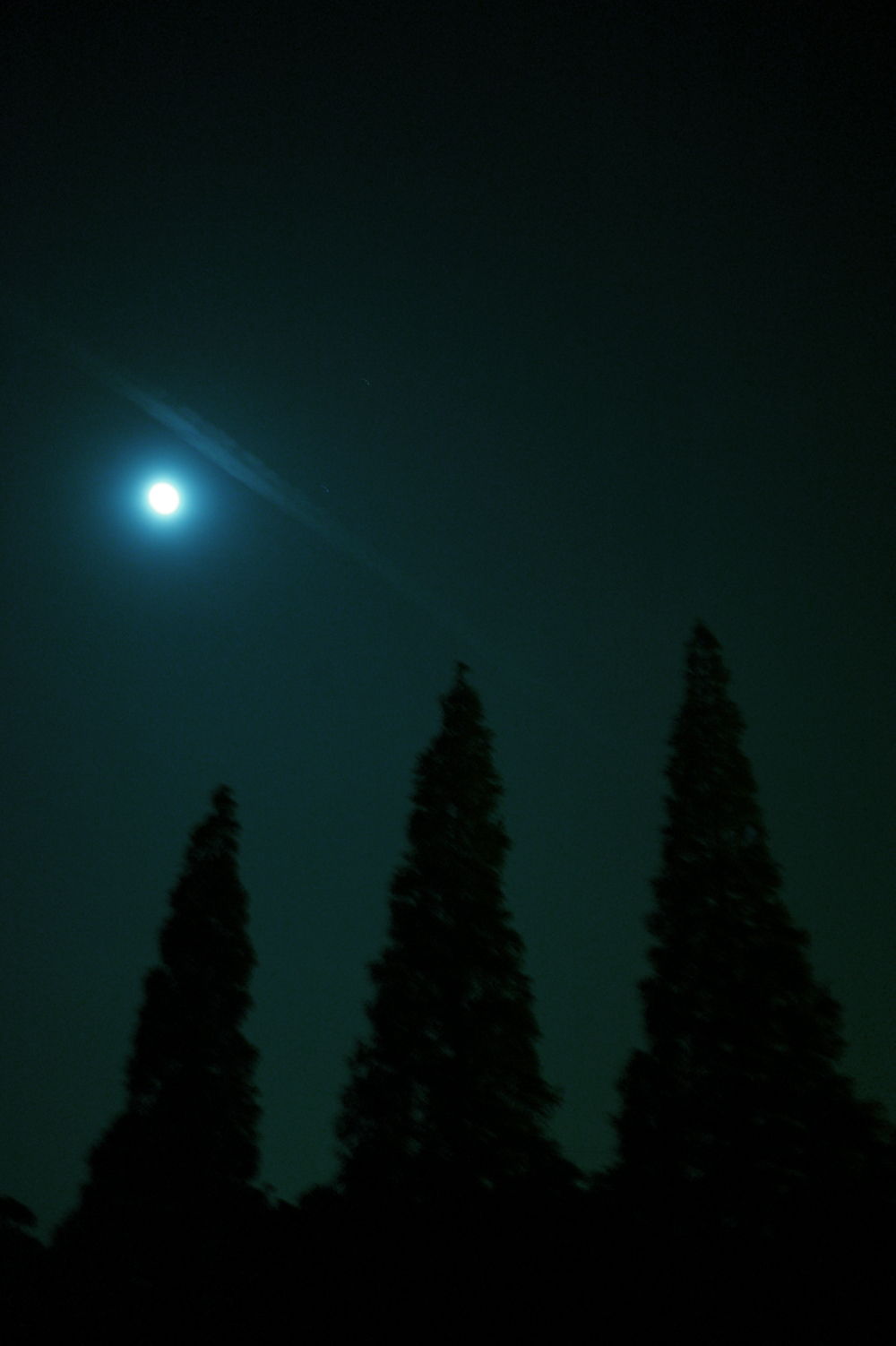 月の灯りと深夜の飛行機雲