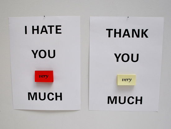 A series of 100 very's in different colors. "Very" is one of these words that you have to be careful how many times you use it.