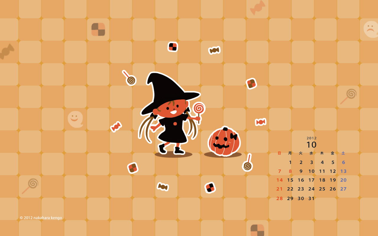 2012年10月のデスクトップカレンダー壁紙です。