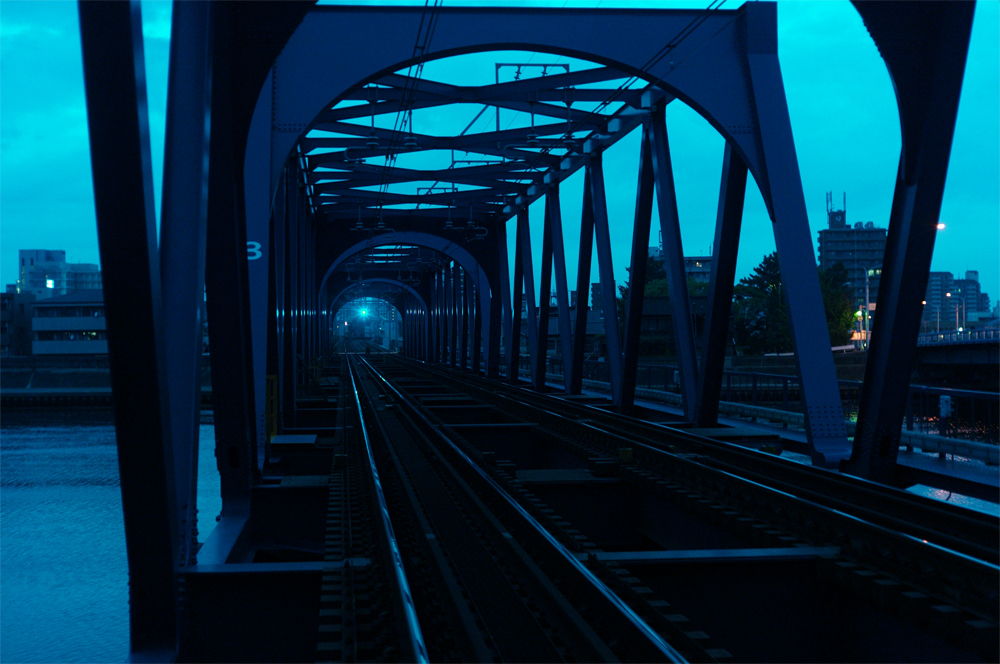 陸橋上の線路と先の街並み http://www.fphoto.info/Decadent-013.html