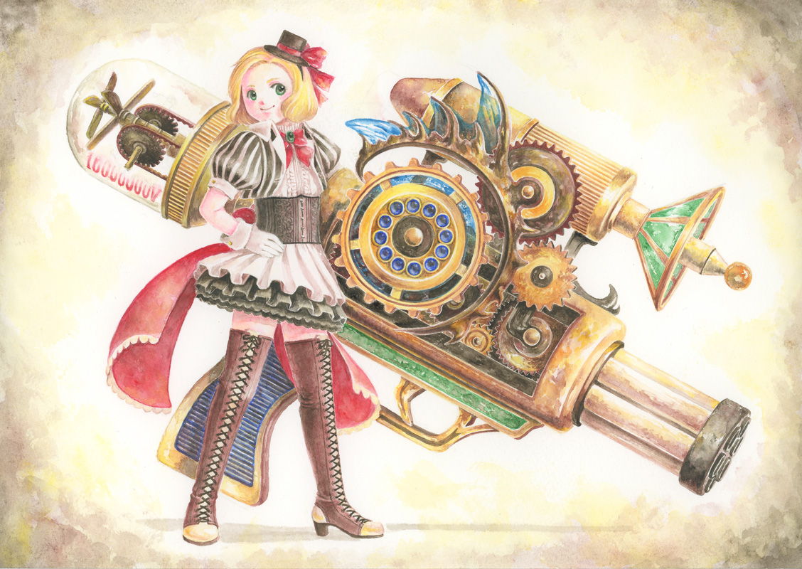 スチームパンクっぽい銃を描きたかった…重さは120キロ(適当)キャラは男の子という設定だったけど、最近になって色々変えようか考え中。