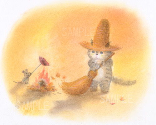 麦藁帽子をかぶった猫 落ち葉焚き