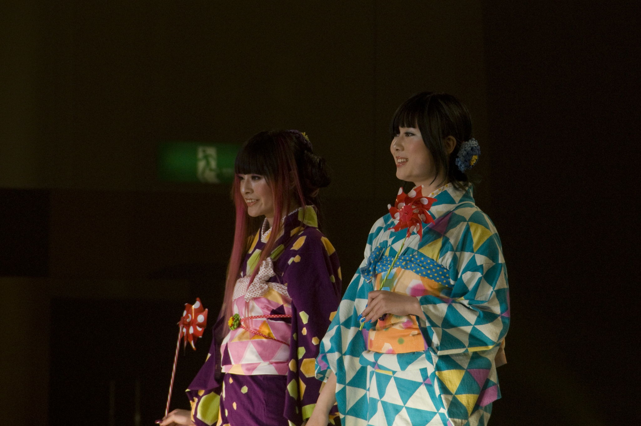 ビビッドな色と対照的に柄は七宝や立涌、麻の葉などの古典柄。
