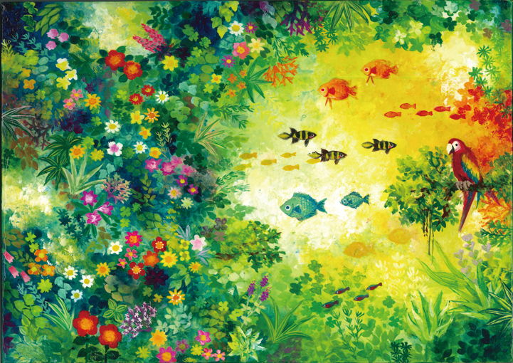 新しいカンボジアの小学校にお贈りさせて頂きました。木漏れ日の中のオウムや熱帯魚たちのように、
