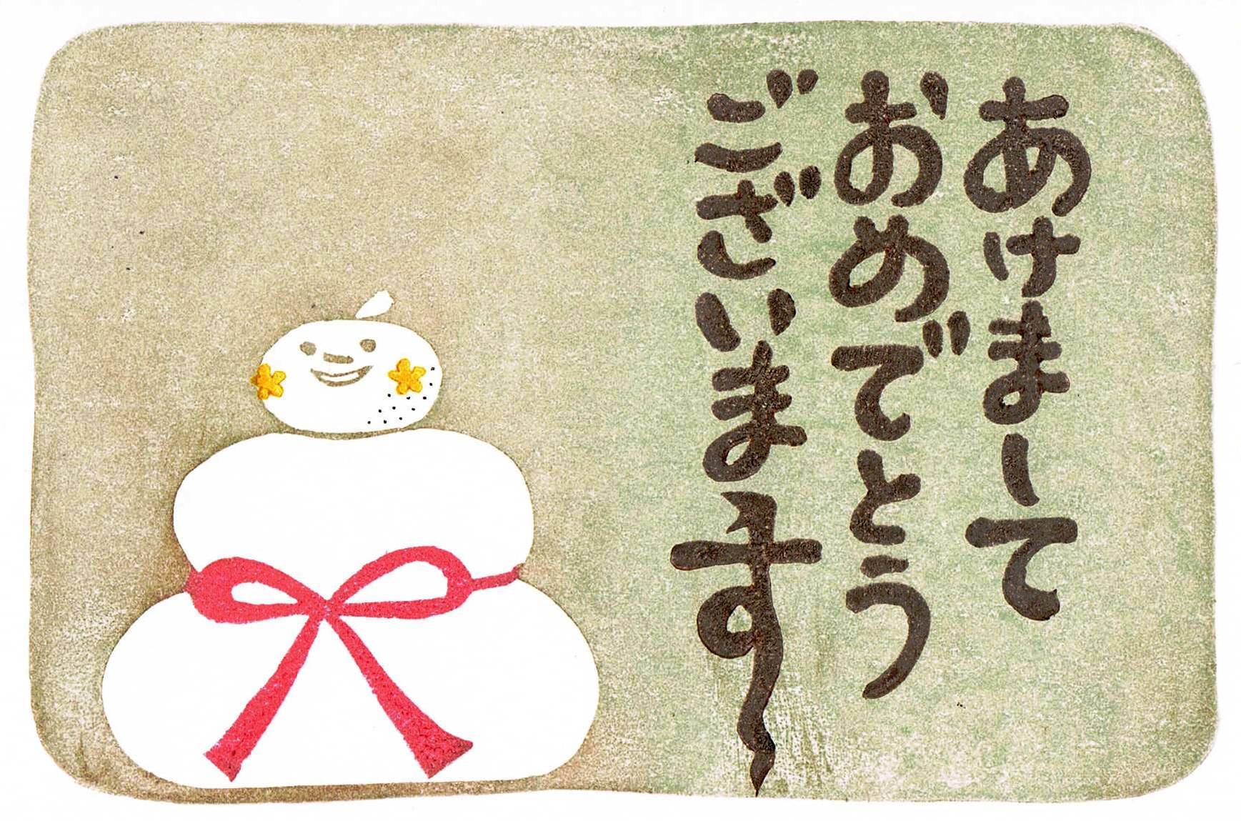 消しゴムハンコの年賀状。文字ちょっとだけへびです。