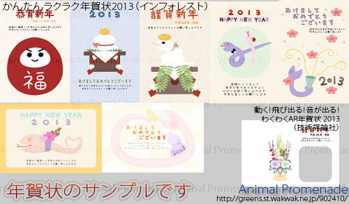年賀状のムック本に載せていただいた年賀状の見本その1(一部)です。