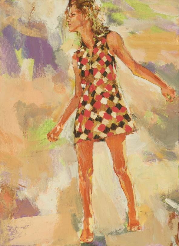 キャンバスの布目の凸凹が紙のように比較的さらっとしていないので描きにくいと言えば描きにくい。が、その凸凹を利用して、下地色の表層に別色を嘗めると二色以上の生の色が視覚的に混ざり合う。(繊維の谷になっているところと、山になっているところに別色が描ける)
