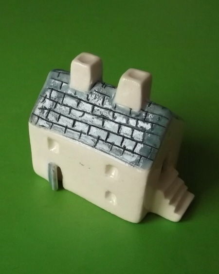 屋根には煙突が二つあり、家の脇には二階へ直接入れるよう、階段とドアも付いています。