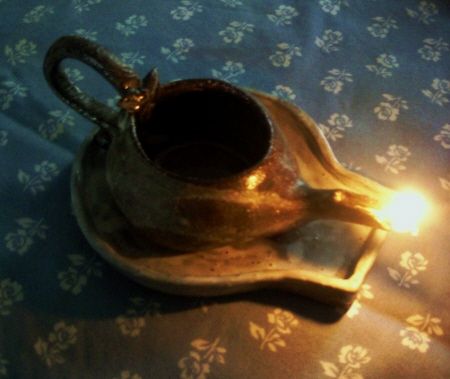 アラジンの魔法のランプのようなオイルランプを陶器で作ってみました。