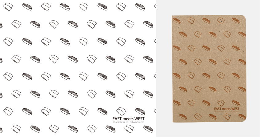 お寿司とステーキをモチーフに柄を作成しました。おいしい食べ物は私たちを幸せにします。このTシャツを着て、みんなが笑顔になってくれたらいいなあという想いを込めました。